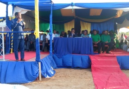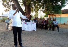 Pichani Aliesimama ni Mkuu wa Mkoa wa Tanga Mh Martin Shigela akizungumza jambo na Wananchi wa Mkinga sambamba na kumkaribisha Mgeni rasmi ili aweze kuwasalimia Wananchi, mara baada ya kumaliza ...