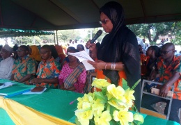Pichani Afisa Maendeleo ya jamii Wilaya Bi. Halima Kahema akizungumza jambo kwenye sherehe ya maadhimisho ya Siku ya Wanawake Duniani kiwilaya maadhimisho yalifanyika katika Viwanja vya Shule ya Sekon...